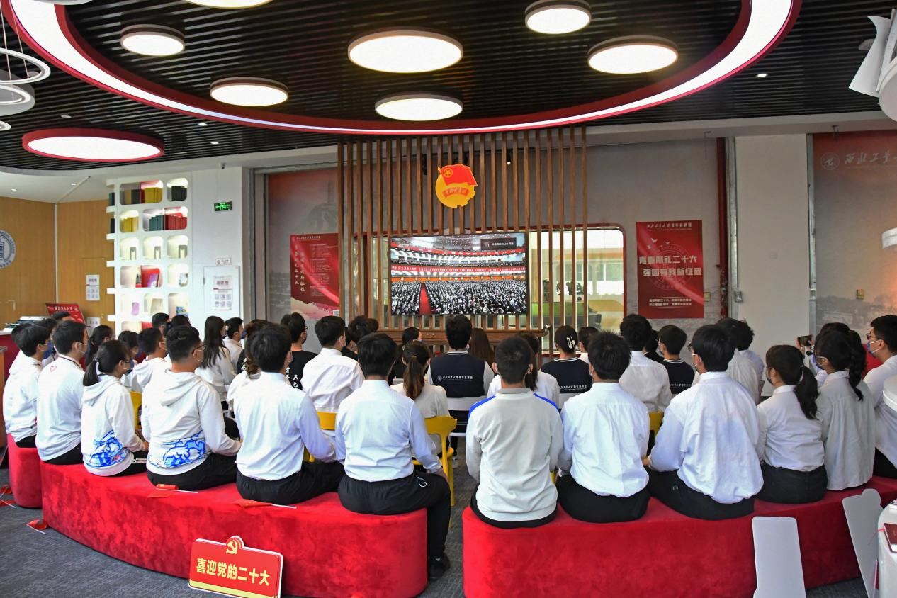 西工大新闻网10月19日电(杜心怡 刘辰一)中国共产党第二十次全国代表大会于10月16日上午10点在北京人民大会堂开幕。西北工业大学团委第一时间引导全校团学青年观看直播,并于长安校区图书馆红色书屋设置收看现场直播主会场。