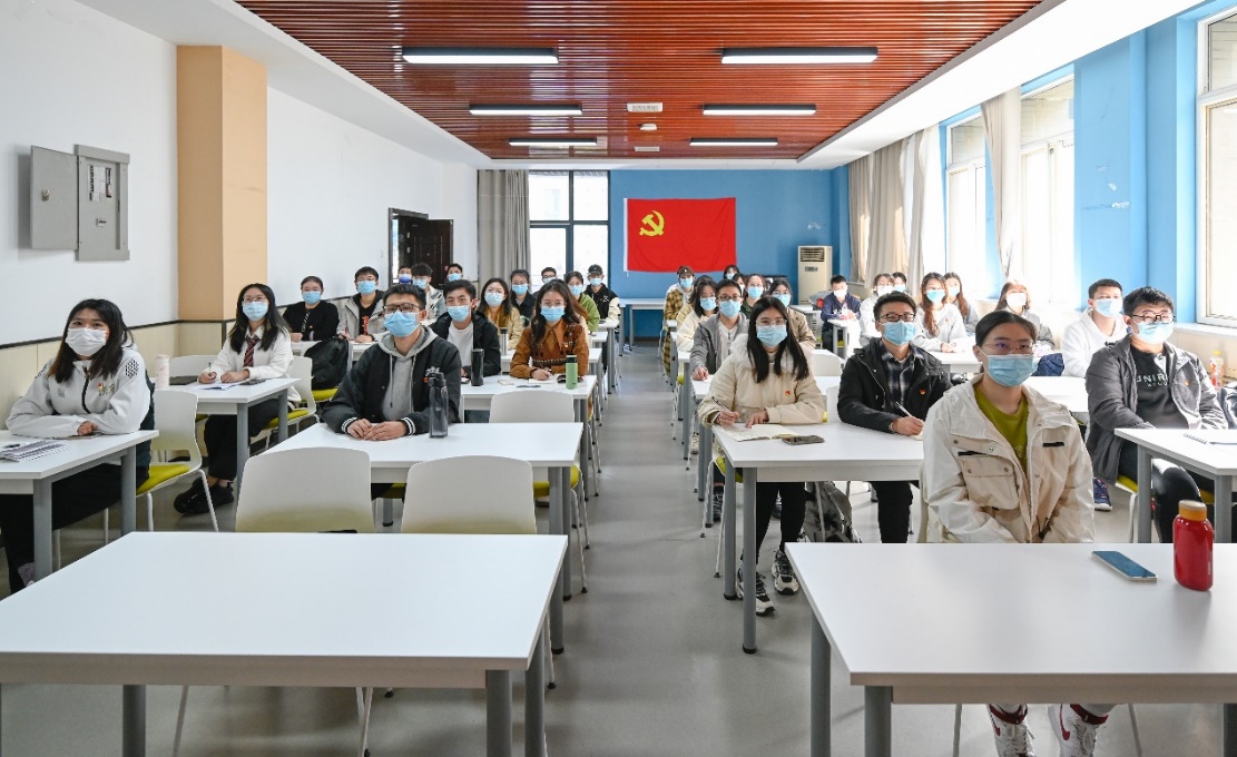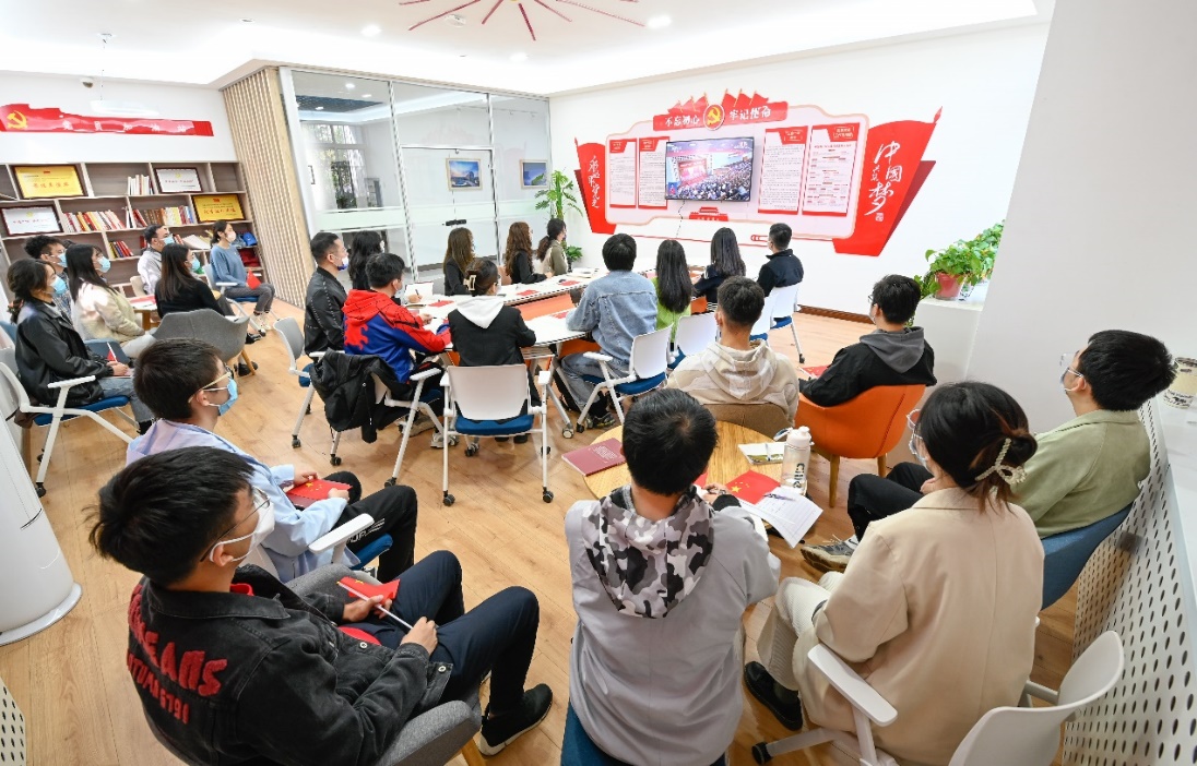 本科生党员代表在教室集中收看开幕会直播