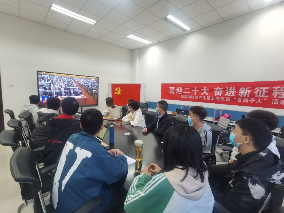 管理学院积极部署,分别在新老校区设5个会场,组织学院领导班子、教职工党员骨干、学生党员代表共同观看党的二十大开幕会,第一时间学习领会大会精神。因疫情防控相关要求,学院其他师生党员以支部为单位分别在会议室、教研室、党员活动室、宿舍等地,通过电视、网络、广播等多种形式收看收听开幕会盛况。