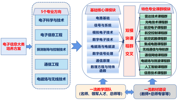 3.汇聚资源、强化基础、培育特色,打造电子信息国际班、航空电子总师班等特色班级。瞄准学院行业电子信息特色,汇聚校内外、国内外各类优势资源,培养既具有扎实的电子信息基础专业知识,又具有开阔的国际视野、良好的国际交流沟通能力,能够在行业电子信息领域从事科学研究、工程设计与应用开发的“总师型”人才。