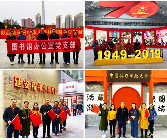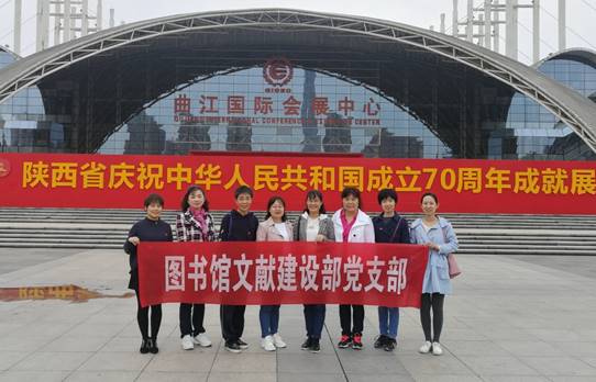 2019年10月11日,图书馆文献建设部党支部和办公室党支部分批参观了陕西省庆祝中华人民共和国成立70周年成就展。