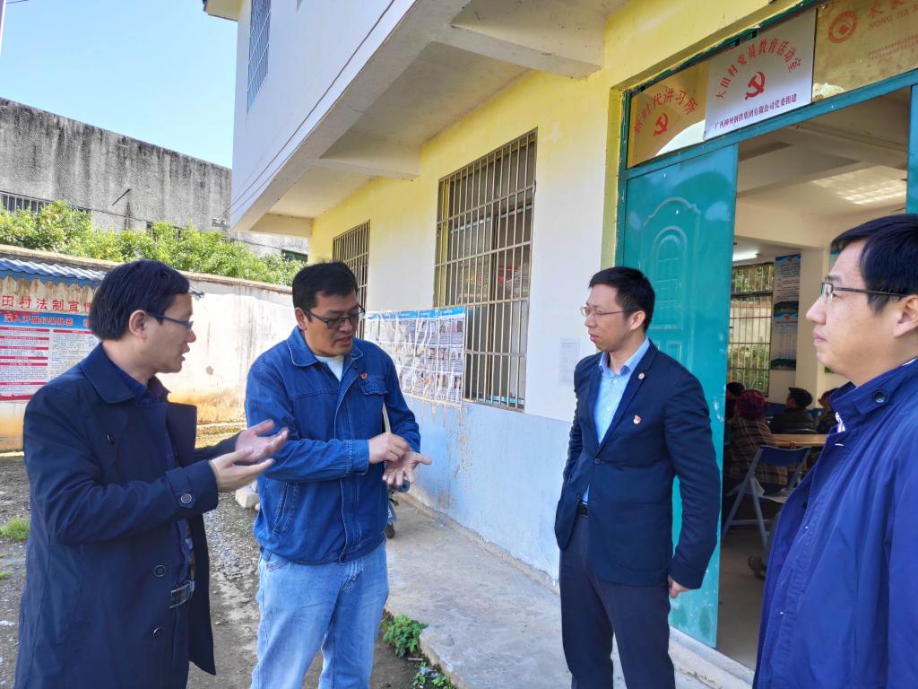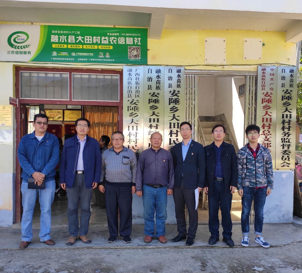 为深入贯彻落实脱贫攻坚、乡村振兴战略,根据学院“不忘初心、牢记使命”主题教育安排,结合校级党建标杆学院创建,发挥学院学科特色,学院党委与融水县安陲乡大田村党总支开展了党建结对帮扶共建活动,共同推进“科技扶贫,电商致富”的帮扶策略。10月29日,计算机学院党委副书记徐方暖,党委委员史豪斌,网络信息安全与电子商务系副教授潘炜以及三名研究生赴大田村开展党建共建活动。