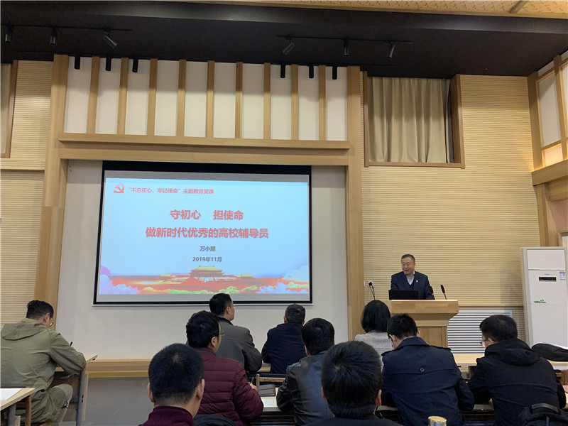 西工大新闻网11月13日电(陈博赵超)11月11日晚,按照学校党委“不忘初心、牢记使命”主题教育部署安排,校党委副书记万小朋以“守初心、担使命,做新时代优秀的高校辅导员”为主题,为全校学生工作干部讲授党课。各学院分管学生工作的副书记、院长助理,辅导员老师、学工党支部党员等聆听了此次党课。